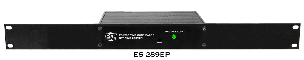 The ES-289E provides a practical method of putting accurate time information onto a network. The unit reads ESE or SMPTE/EBU time codes. The NTP output is provided on a 10/100 Base-T Ethernet connector. The ES-289E is housed in a rugged black anodized desktop enclosure. A voltage-controlled temperature-compensated crystal oscillator is used to maintain the accuracy of the time code outputs when lock is lost.